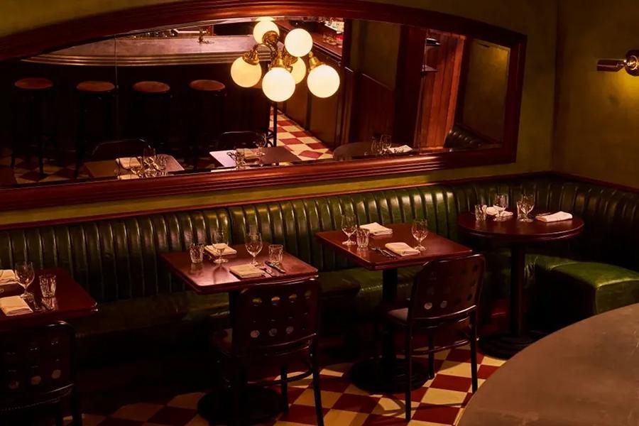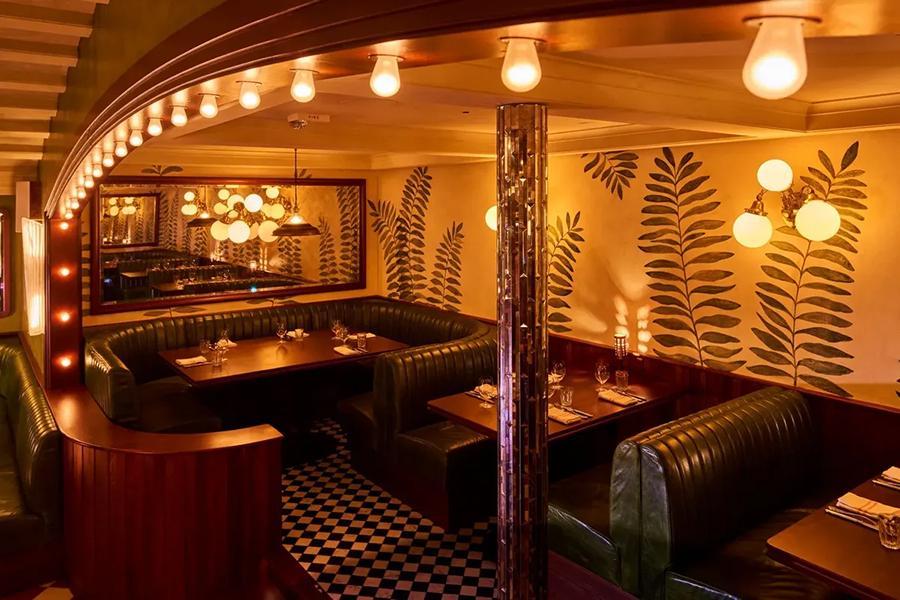 风格和气质也是原汁原味的,餐厅由设计师 Zeb Stewart 操刀,整体以复古氛围呈现。