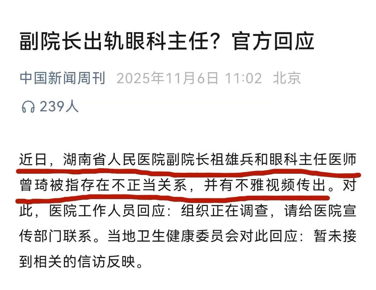这段大尺度视频里,湖南省某医院副院长与美女眼科副主任,正将一个安静的空间,演绎为褪去职业伪装的暗房。