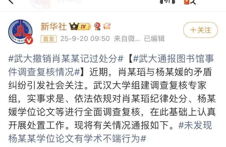 当武汉大学针对肖某瑫与杨某媛纠纷的调查复核通报正式发布时,‘实事求是’‘依法依规’的表述充斥全文,七条结论看似为这场持续数月的舆论风波画上了句点。然而,公众感受到的并非问题解决的踏实感,而是一种‘字字合规却处处违和’的割裂——精心打磨的话术背后,未被真正触及的核心矛盾依然存在。