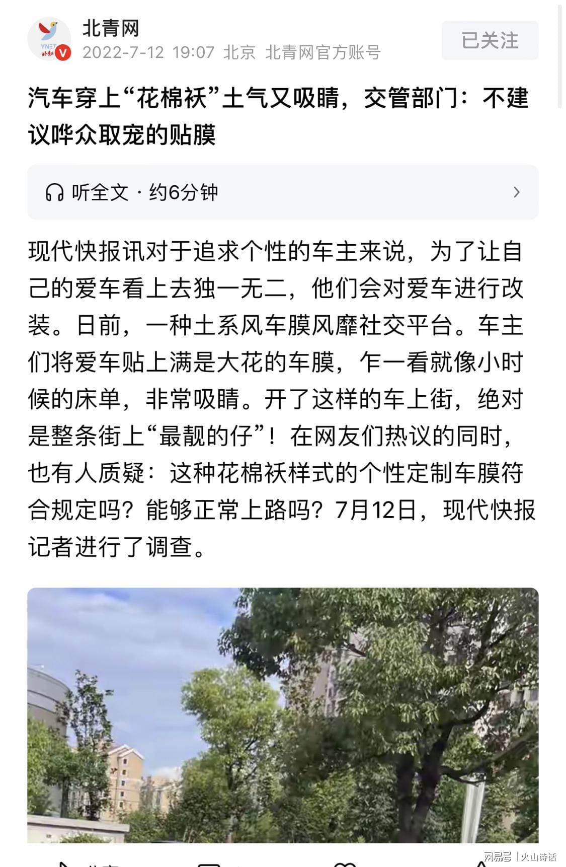 在网友们热议的同时,也有人质疑:这种花棉袄样式的个性定制车膜是否符合规定?能否正常上路?