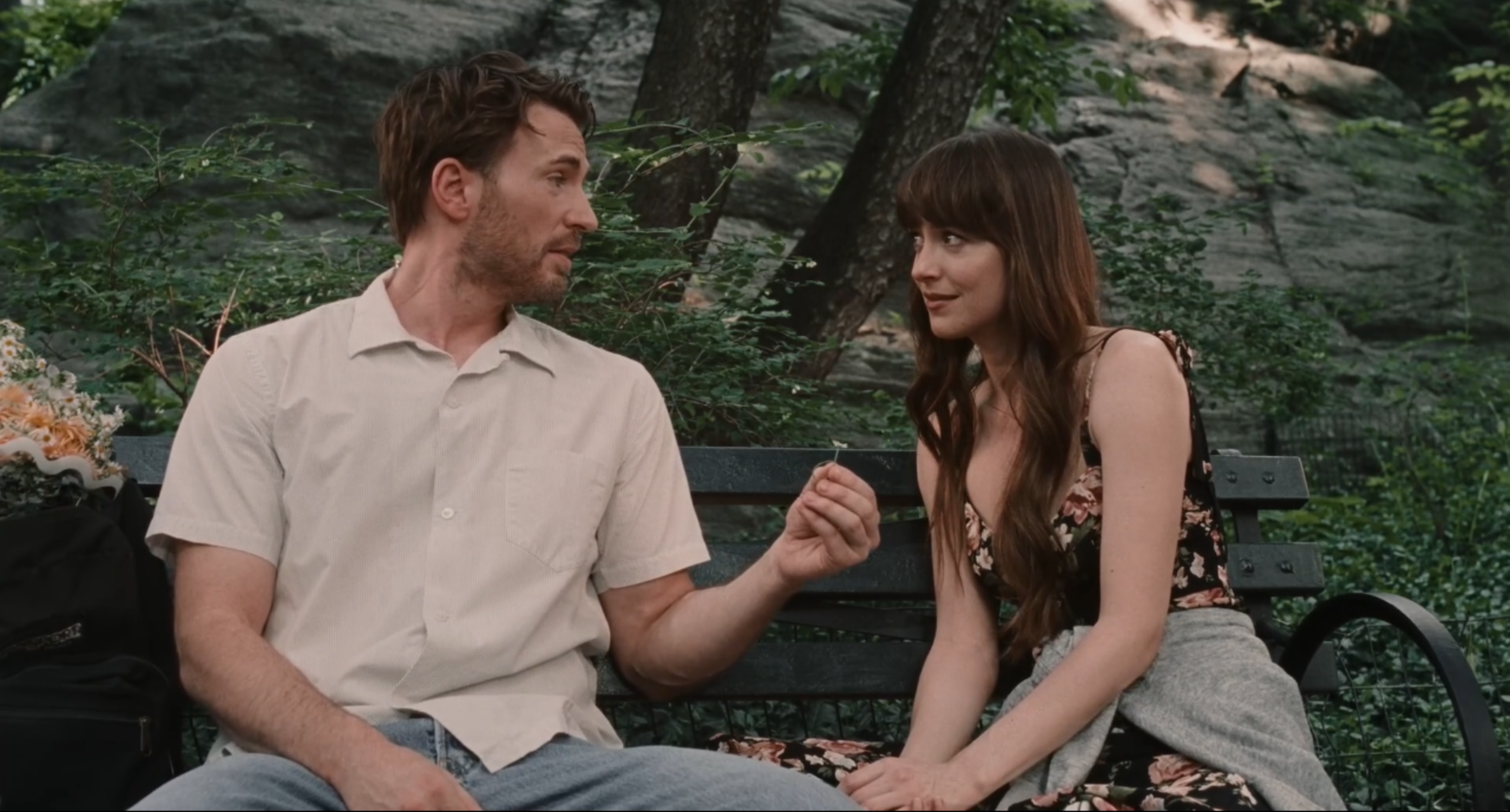 演员阵容很豪华,凭《五十度灰》走红全球的达科塔·约翰逊,“美国队长”克里斯·埃文斯,美剧《最后生还者》主演佩德罗·帕斯卡,三人一起出演了上述这样一个三角恋故事。