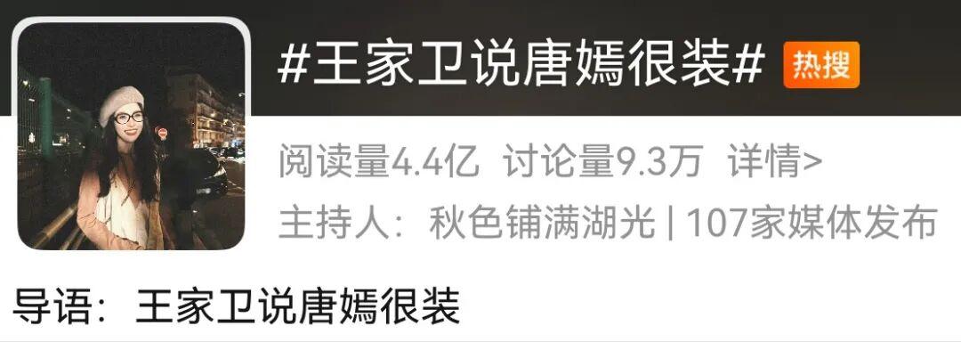 说实话,当看到“王家卫说唐嫣很装”这条热搜时,我的第一反应是震惊,甚至有些不敢相信。王家卫,这位以独特艺术风格著称的导演,竟然会如此评价一位女演员?