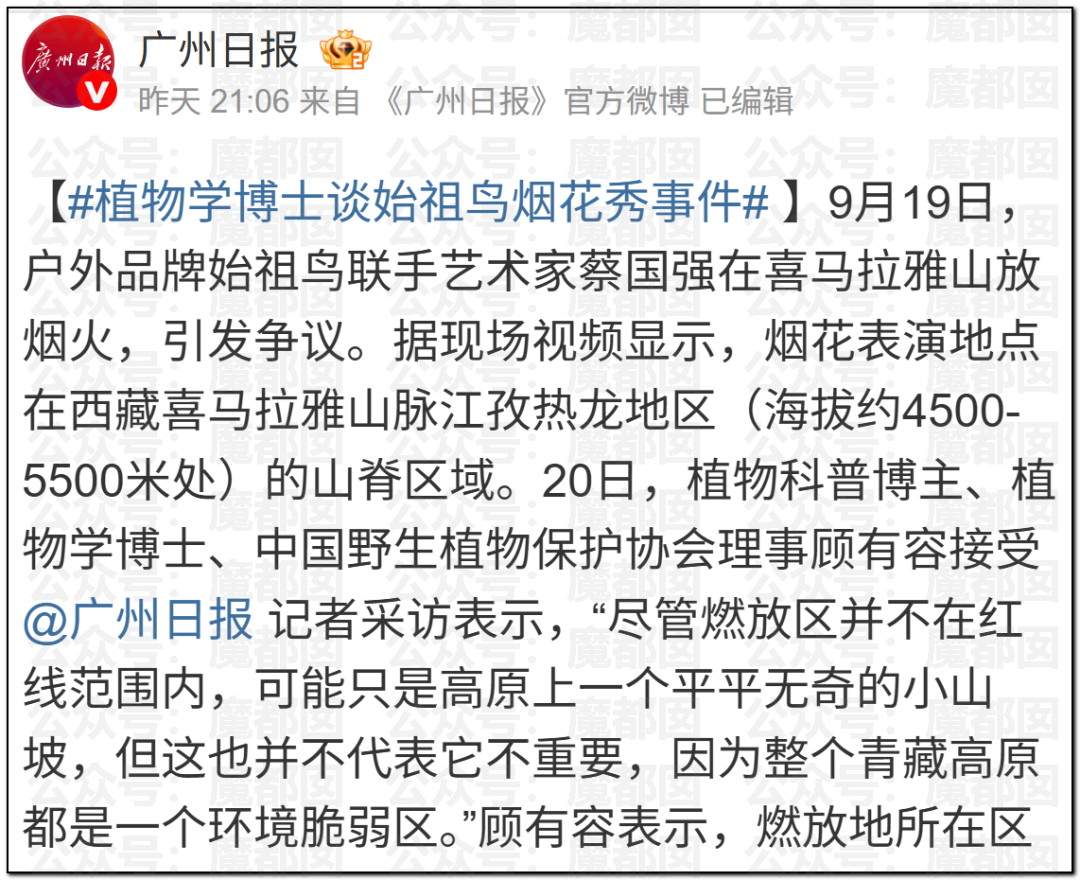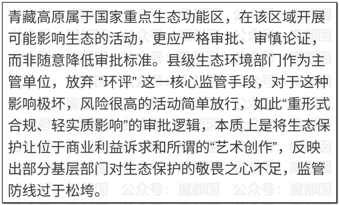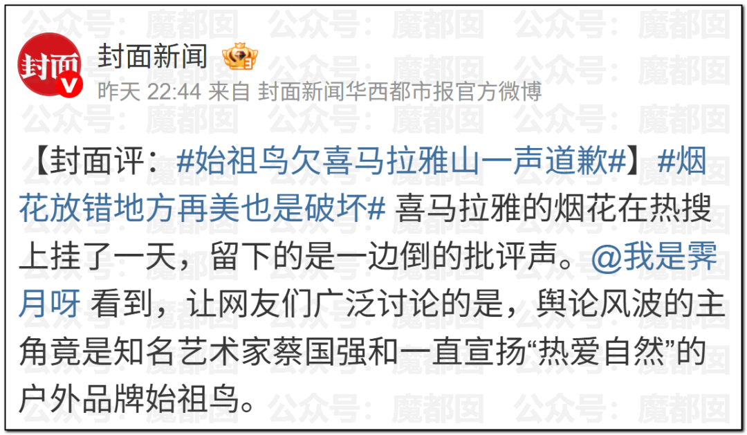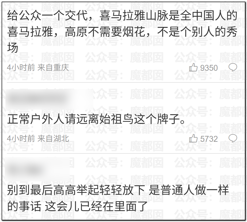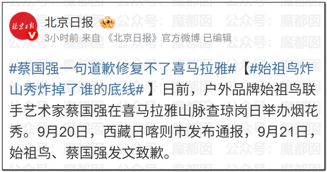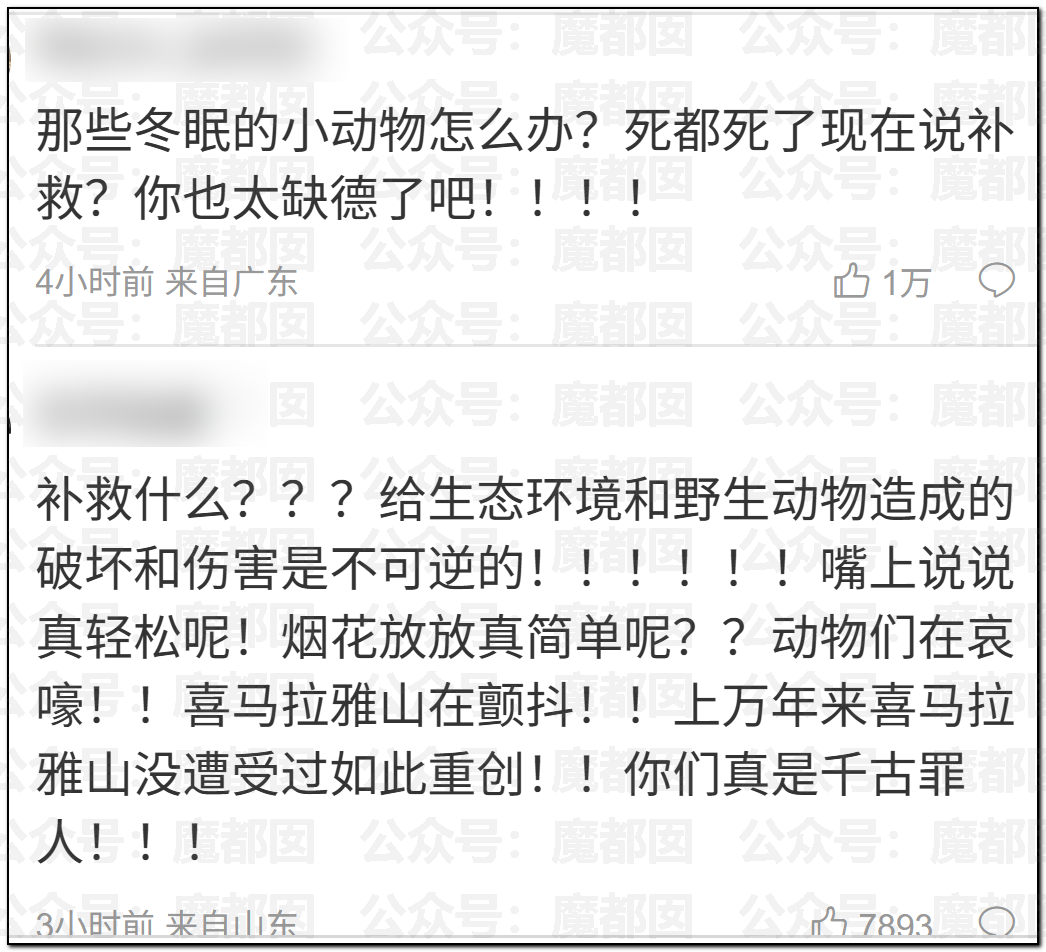 自然和人类共享一个共同家园,“先破坏后补救”从来都是行不通的,更何况是一次为了流量的商业营销。别拿“艺术”和“合法”来堵悠悠众口了,雪山不是秀场,炸错了地方的烟花再美也是破坏,再火也只会令人反感。