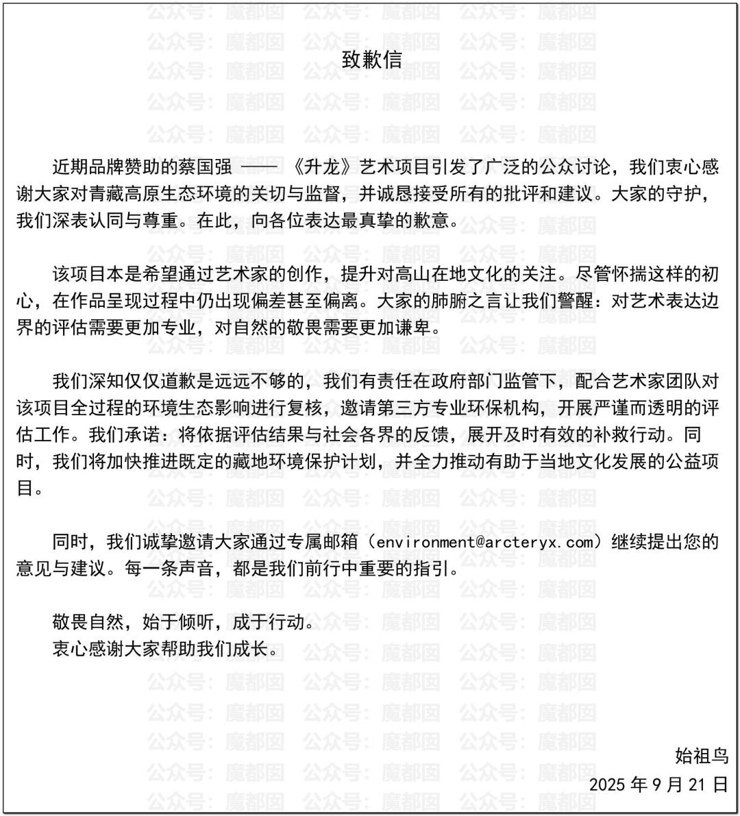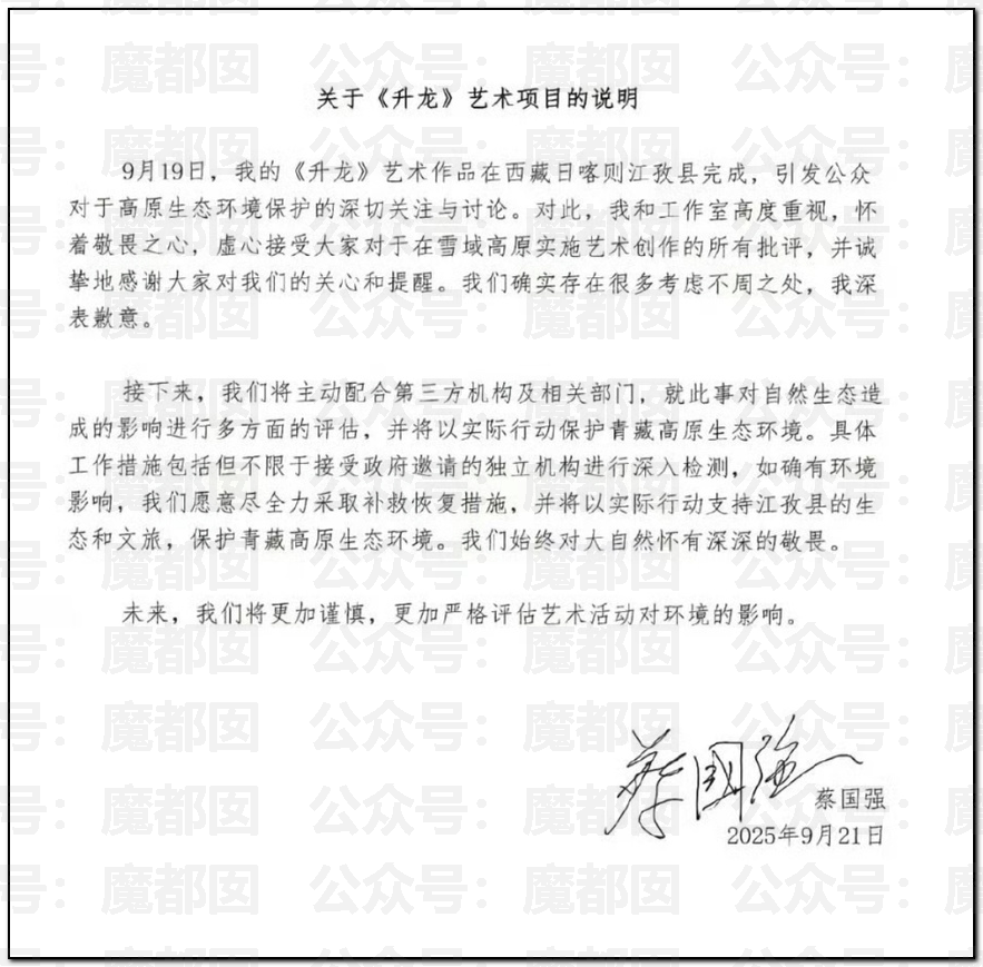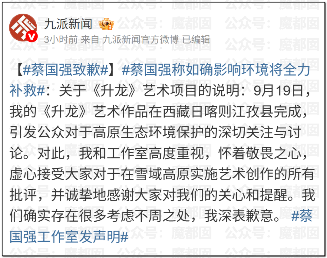 但是我们查询原文发现,蔡国强发布的并不是道歉信,而是一个项目说明: