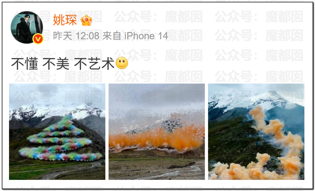 也不知道是哪家想的鬼点子,让蔡国强用了“环保材质”炸了咱们中国少数民族的神山和中华龙脉…