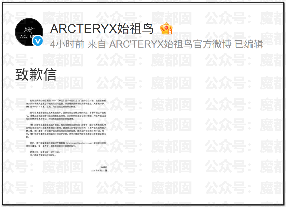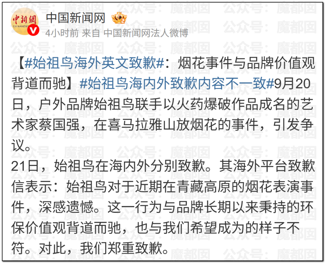 然后神奇的来了,始祖鸟的道歉信竟然和它在外网的道歉信不一致!