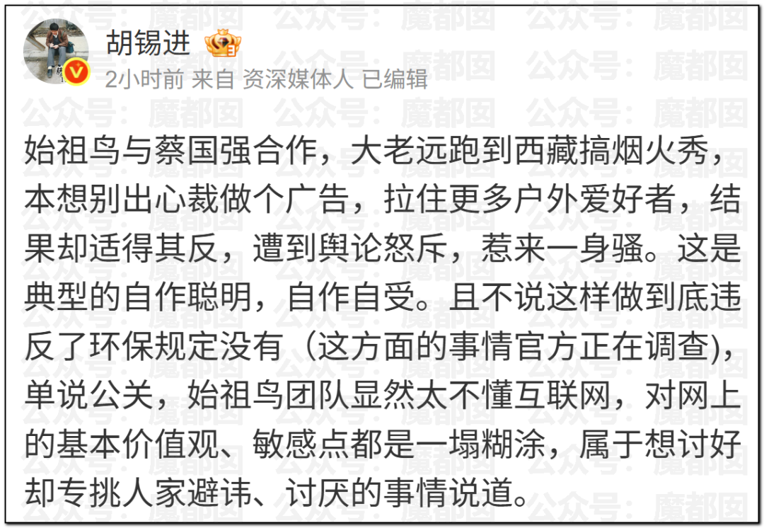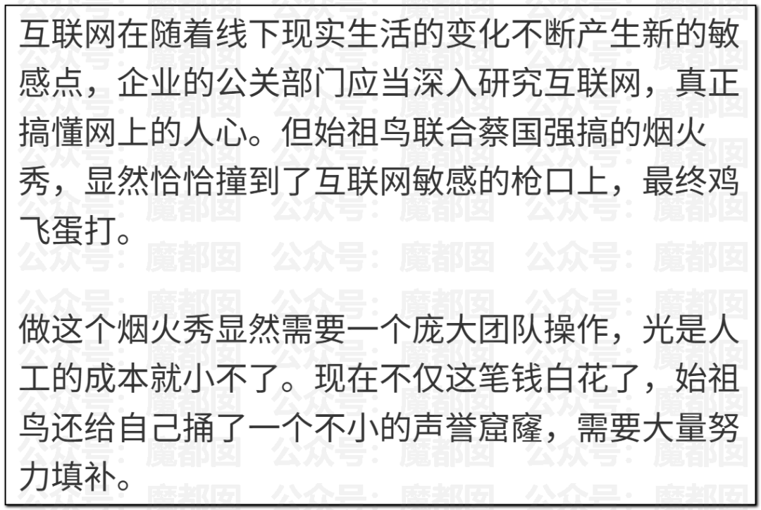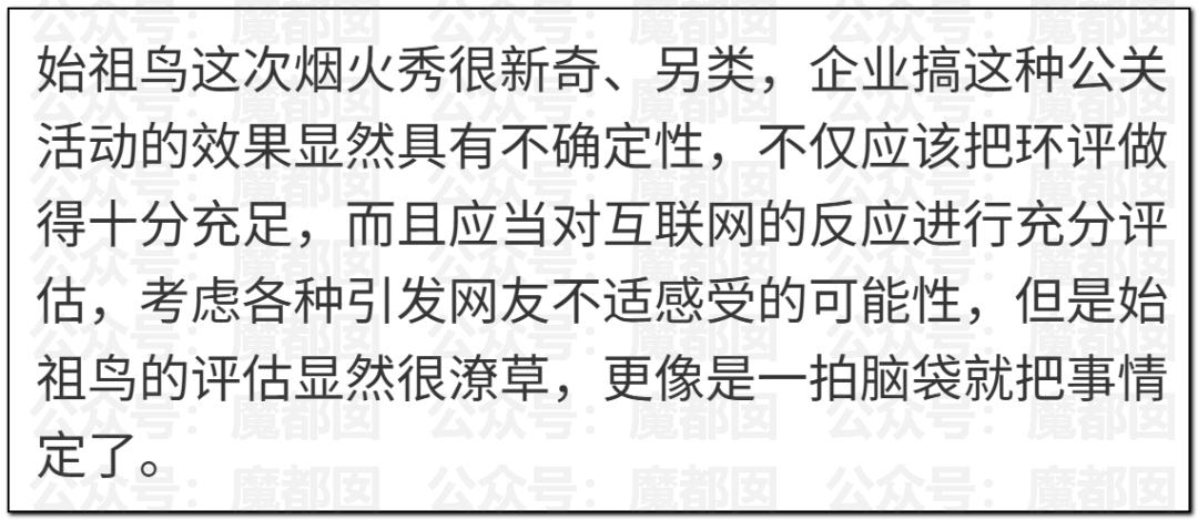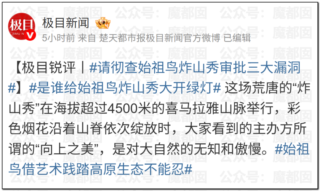 始祖鸟再怎么糊涂,这种大型活动也不可能不报批,那么到底是谁批准了这场荒唐的烟花秀?