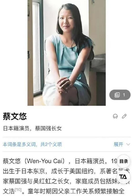 而大女儿蔡文悠在随家人搬到美国后,为了上学和事业发展方便,也申请加入了美国国籍,从而拥有了日本和美国的双重国籍。