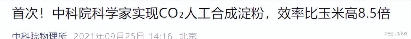2021年9月,中国科学院天津工业生物技术研究所宣布重大突破:首次实现从二氧化碳到淀粉的全人工合成。这项技术无需耕地、无需种植,通过化学与生物催化组合,在实验室中即可完成淀粉生产,未来将实现规模化量产。