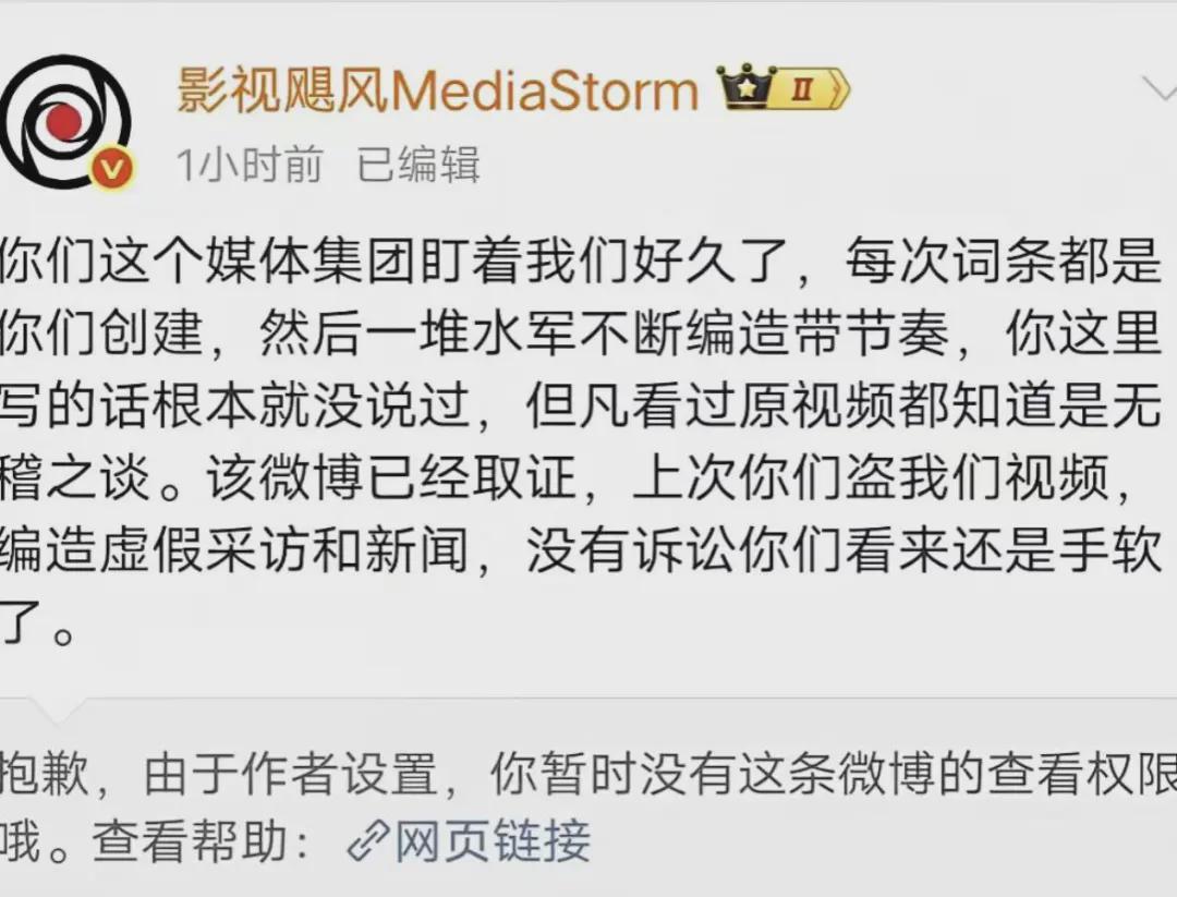 影视飓风同时表示,该微博已经取证,并警告称:“上次你们盗我们的视频,编造虚假采访和新闻,没诉讼你们看来还是手软了!”