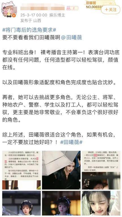 女主这边也卷成了求职现场,赵露思粉丝逐帧对比原著描写,把其他剧里的灵动片段和沈妙绑定;田曦薇粉丝以“圆脸杏眼”为突破口,直言她的长相和角色完美契合;就连05花艾米的粉丝,也拿着年龄贴合原著的优势疯狂刷存在感。
