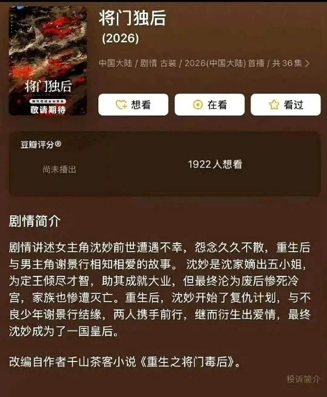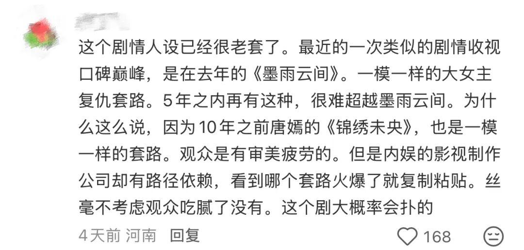 眼看着重生复仇古偶慢慢冒头成了热潮,市场上同类剧扎堆涌现,它没赶上;