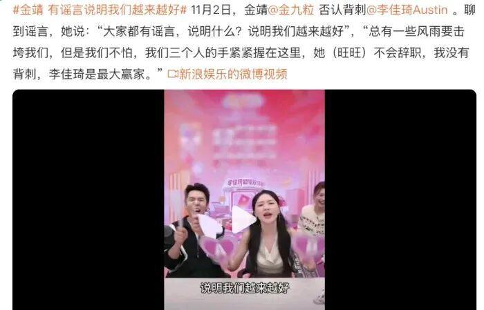 关于早前“李佳琪落魄,金靖背刺”的传闻,算是给出了回应,也顺势被大家解读为对《繁花》一事的一语双关。