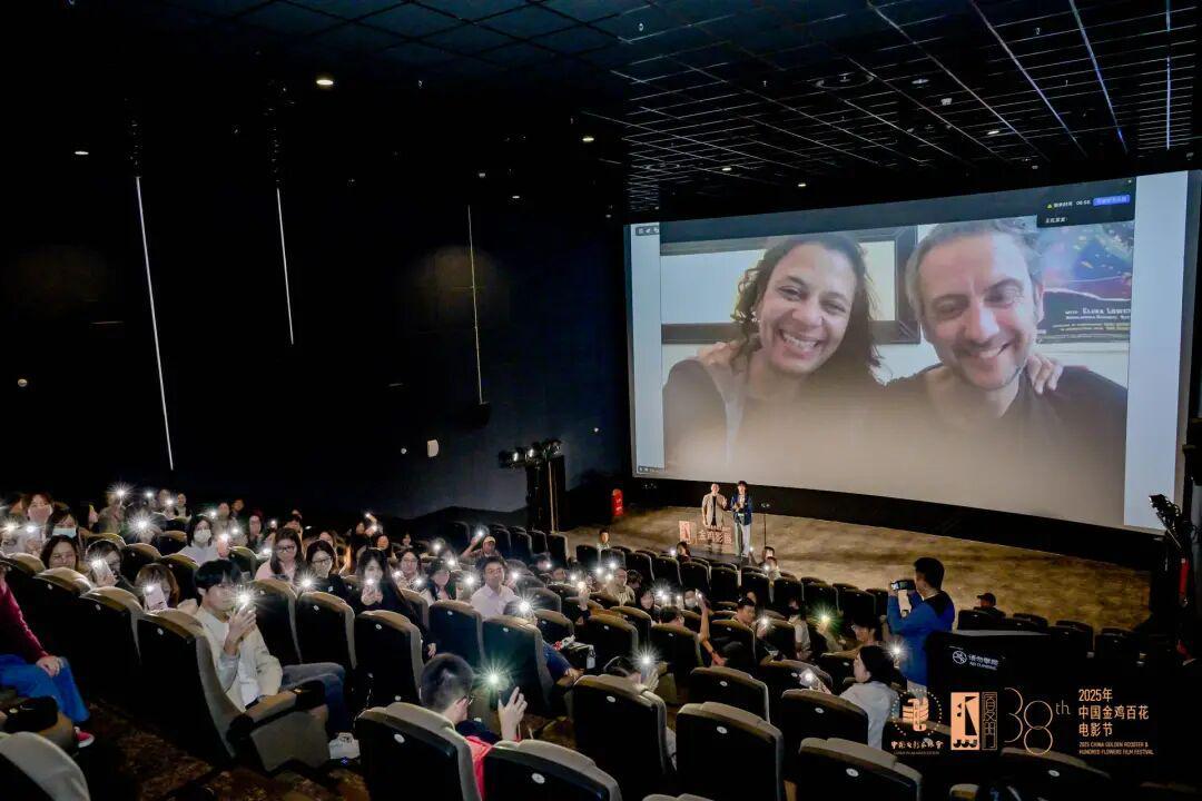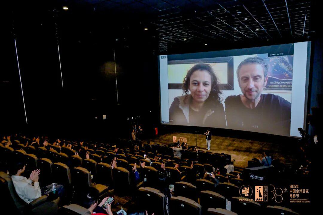 11月13日晚,《死钻倒影》亮相金鸡国际影展,导演伊莲娜·卡泰特、布鲁诺·福扎尼通过现场连线的方式与观众进行了映后交流。