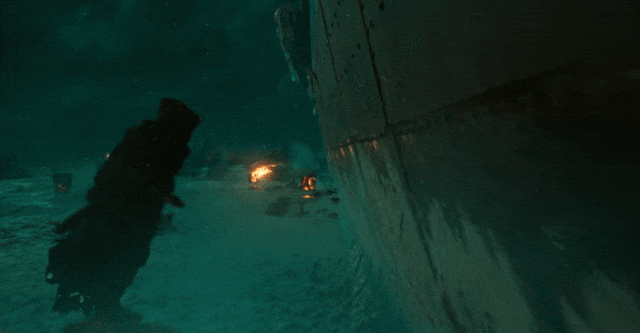 怪物登上船后,影片切换到他的视角,呈现了它的遭遇。