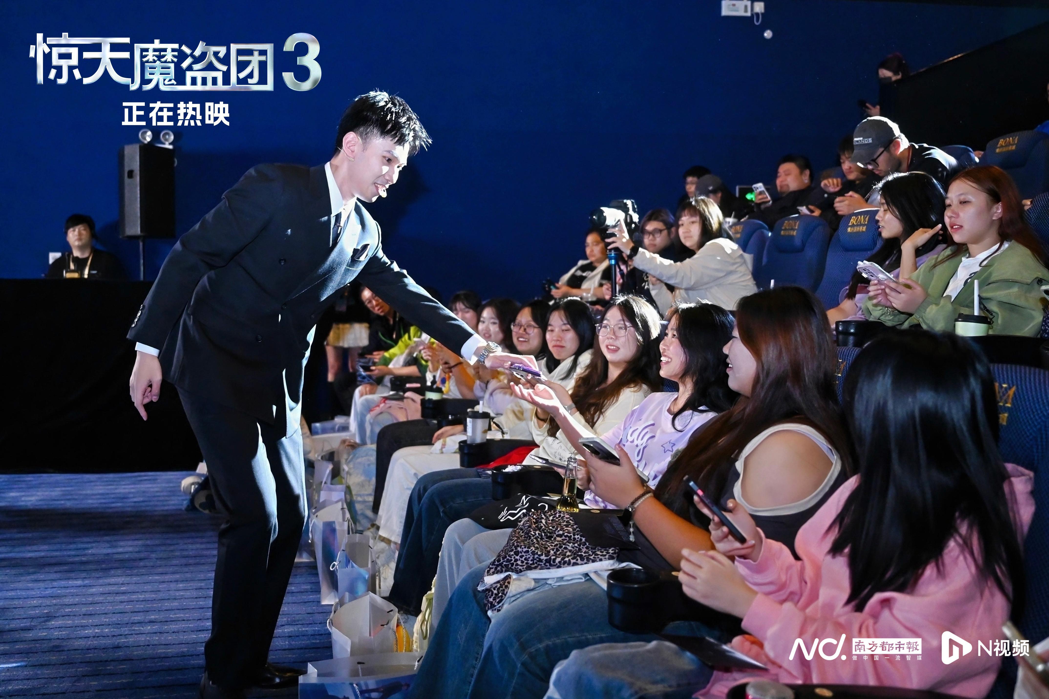 南都讯 记者傅圆媛 11月13日晚,电影《惊天魔盗团3》中国首映礼在北京盛大举办,并同步联动厦门金鸡影展分会场,以“天涯共此时”的创意形式打造出双城同欢的魔术狂欢盛宴。首映礼现场彻底打破传统观影模式,化身大型沉浸式魔术秀场,魔术师刘世杰、孙峥以电影中的经典魔术场面为灵感,不仅完美复刻“飞牌奇迹”“钻石爆破”“雪花变装”等高难度魔术,更融入中国传统戏法元素,用“中国钱”创意表演点燃全场气氛。歌手黄子弘凡也惊喜现身,参与“送钻石”魔术互动环节,将影片“马上有钱”的吉祥寓意传递给每一位观众。