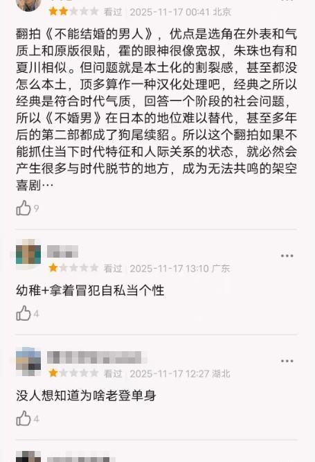 5. 这部名为《他为什么依然单身》的作品,尚未播完第一集,已有大量网友直言:“没人关心一个中年男人为何独身!”