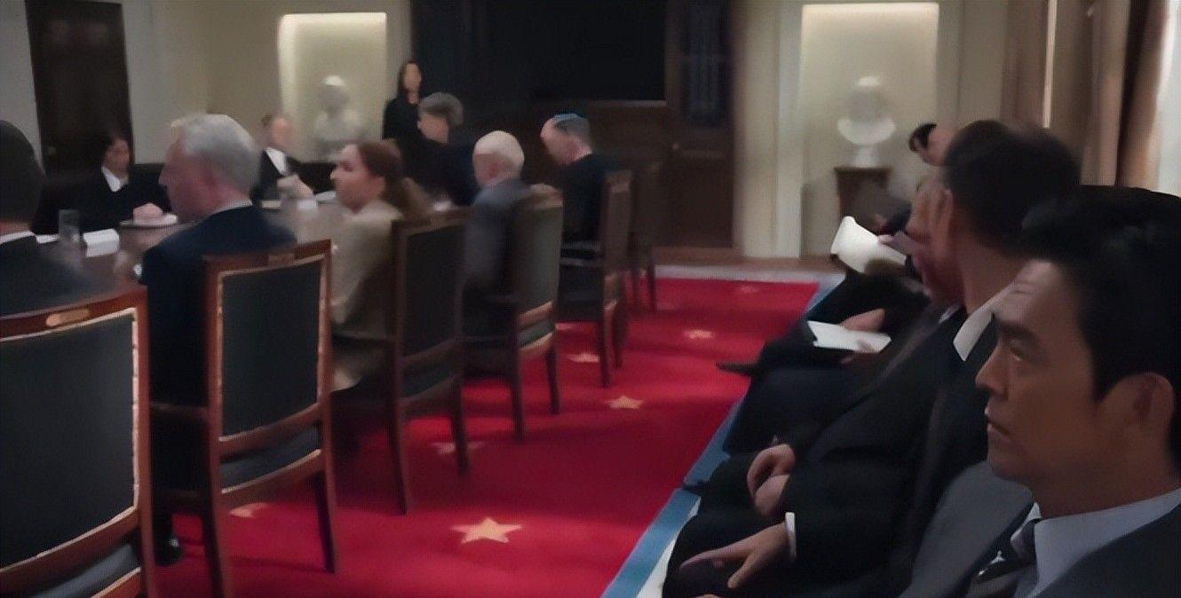 此外,剧中所有与中国相关的角色几乎均为反派设定,言行举止粗鲁无礼,外貌造型邋遢不堪;相比之下,韩国人物一律西装革履、谈吐得体,形成鲜明对比。更有甚者,会议场景中竟铺设五星红旗图案地毯供人踩踏,此举无疑是对我国国家象征的极大不敬。