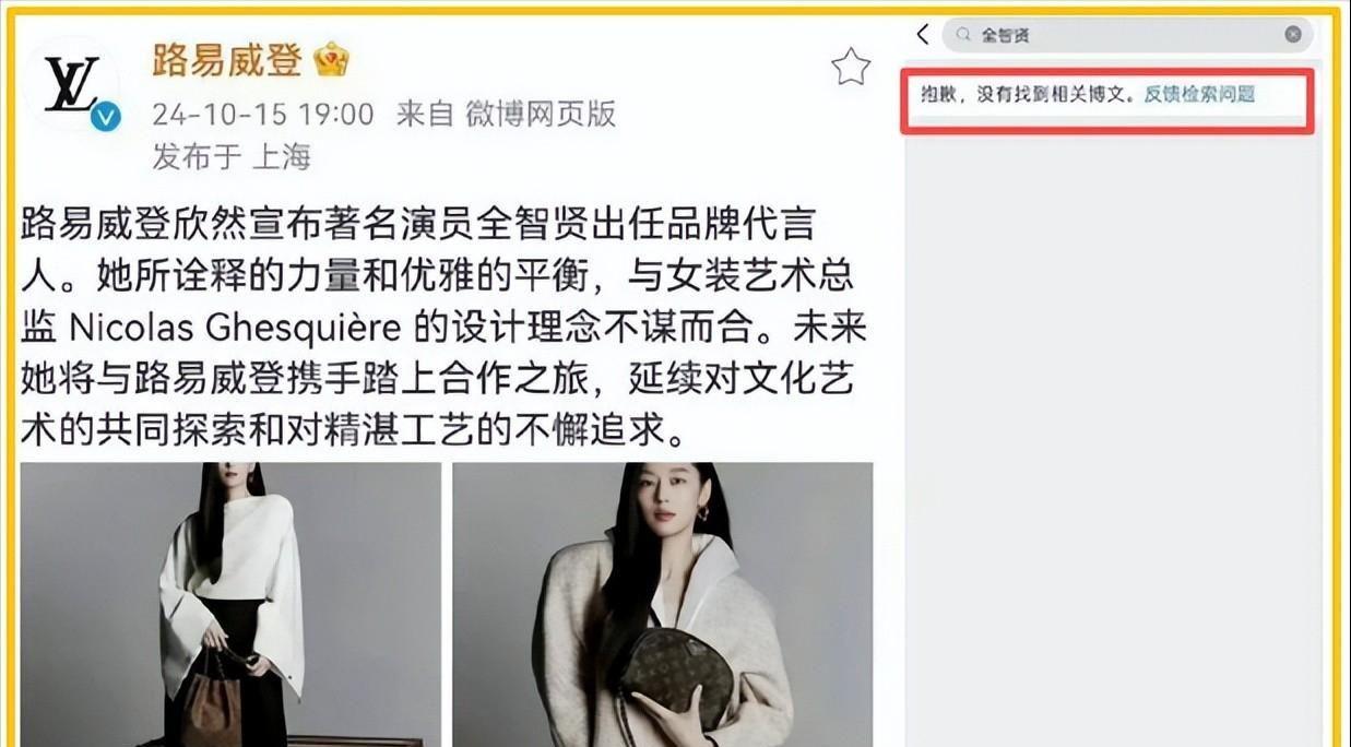 瑞士腕表品牌伯爵同步清除官网及电商平台中全智贤的所有代言信息,首页宣传图迅速替换;家电品牌科沃斯发布澄清声明,强调与全智贤的合作已于年初终止,呼吁公众勿误伤品牌形象;就连一向沉默的LV官方账号,如今也彻底不见其身影。