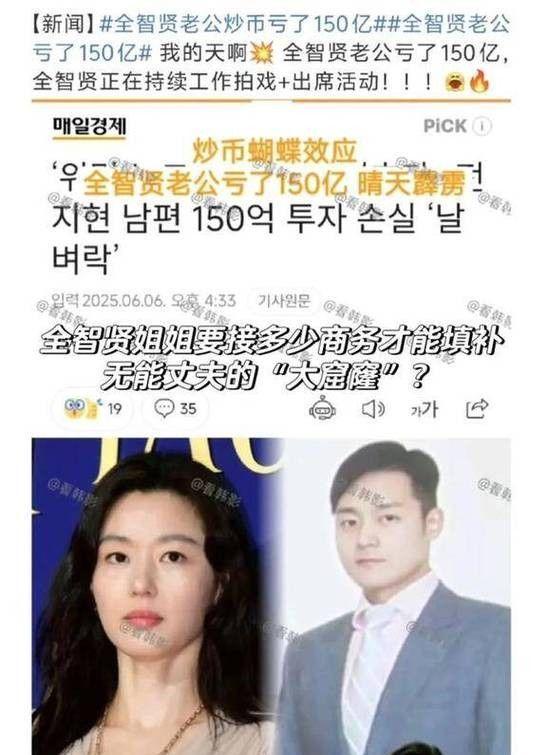 然而进入2025年后,全智贤突然频繁复出,接连出席各类商业活动并接拍《暴风圈》等重点项目。恰在此时,韩国媒体披露崔俊赫投资虚拟货币遭遇重大亏损,金额高达150亿韩元(约合7935万元人民币)。