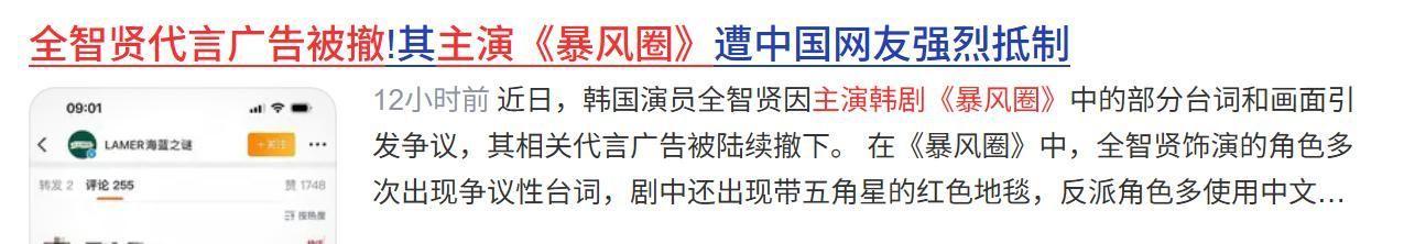 2.中国日报网:全智贤新剧涉辱华台词 代言广告被撤