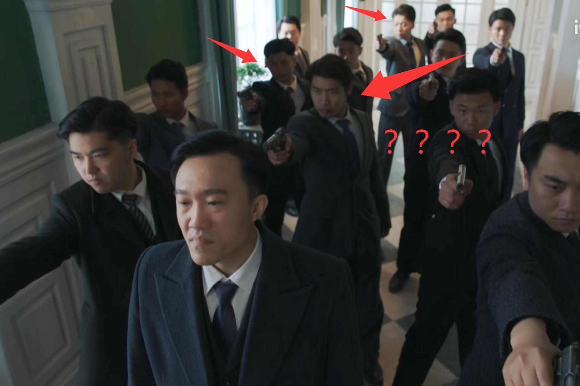 军统局齐刷刷全都举枪,前排也就罢了,后排你也掏枪指谁呢?