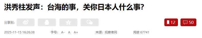“台湾早不是日本殖民地了!”洪秀柱在文中的怒斥,直击日本政客的历史傲慢。