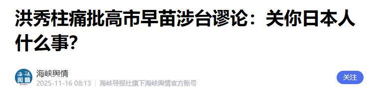 “拿台湾当筹码,讨好美国、扩权日本军事角色!”洪秀柱精准点破了高市早苗的算计。