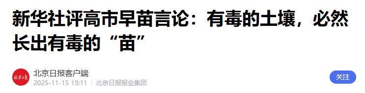 但高市早苗上任未满一个月,就公然在国会答辩中宣称“相关言论符合日本政府看法,无意撤回”。