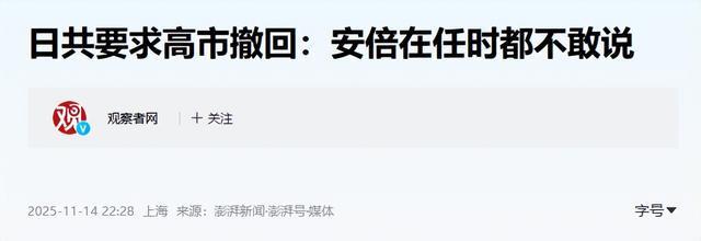 “就算是安倍晋三在任时都不敢说这样的话”,日本共产党主席志位和夫的怒斥,道破了高市言论的爆炸性。