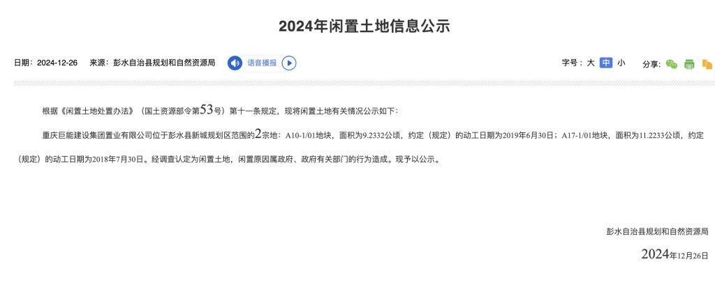值得一提的是,2024年12月,清偿回购款的土地被彭水县资规局确定为闲置土地。这一信息或许能为案件带来新的线索和思考。