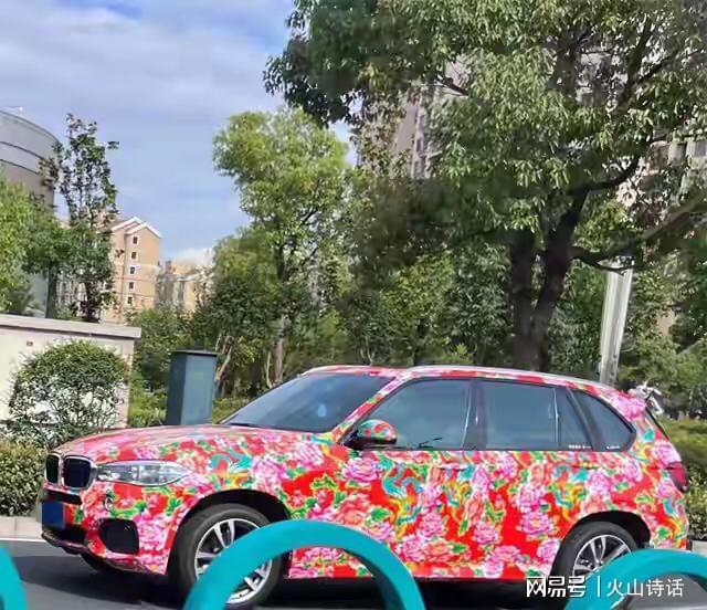 车主们将爱车贴上满是大花的车膜,乍一看就像小时候的床单,非常吸睛。开着这样的车上街,绝对是整条街上“最靓的仔”,回头率爆表!