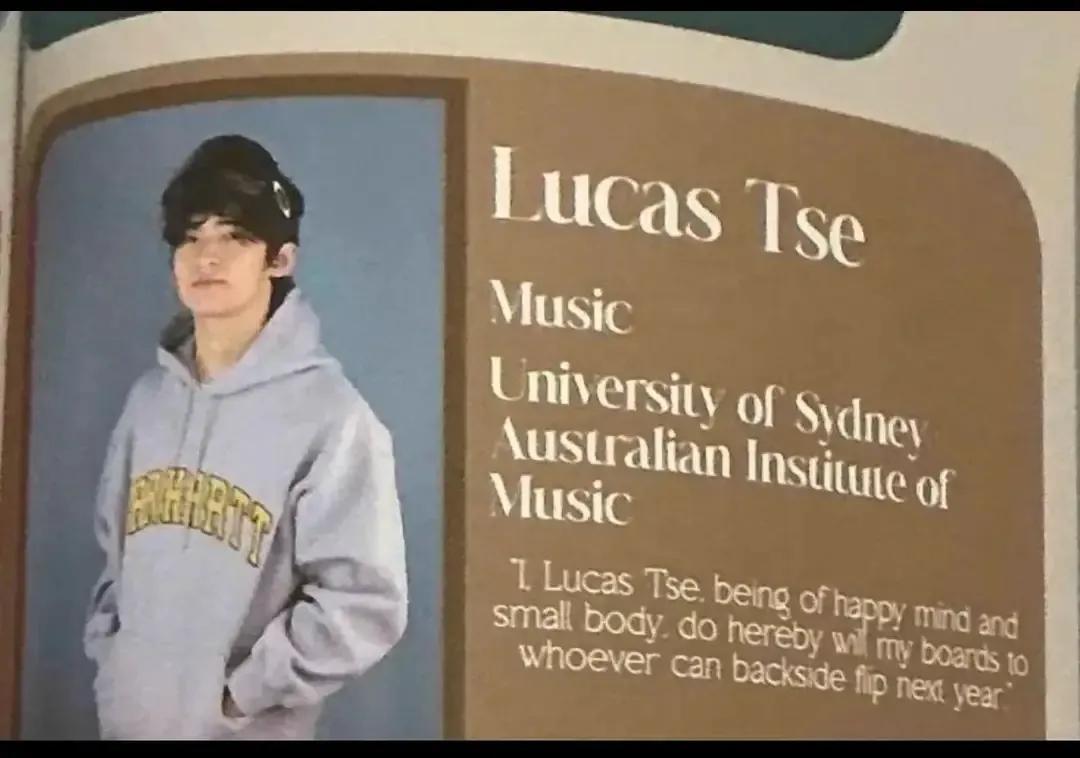 前不久,有网友晒出Lucas学校年报的照片,透露他已经收到了两所澳洲名校的音乐专业录取通知书,分别是悉尼大学和澳大利亚音乐学院。这一消息引起了广泛关注,毕竟Lucas从小就展现出对音乐的浓厚兴趣和天赋,选择音乐专业也是顺理成章的事情。
