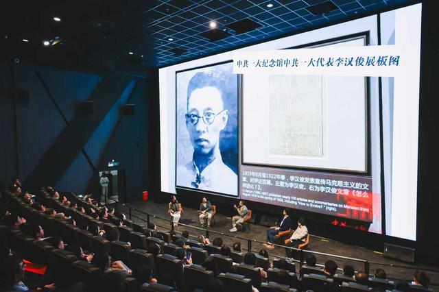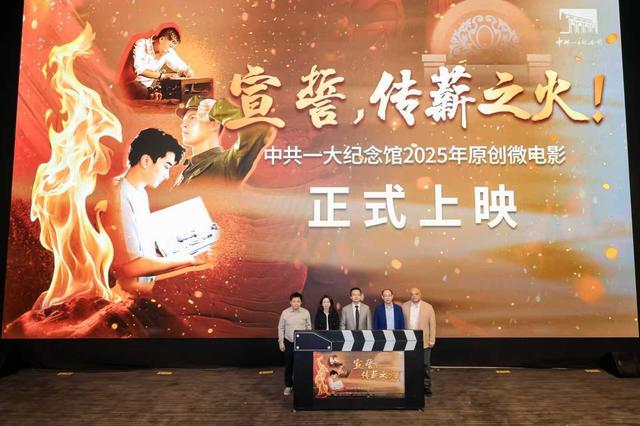 活动现场,中共一大纪念馆党委书记、馆长薛峰,上海电影(集团)有限公司党委副书记郑英豪,上海市文化创意产业促进会秘书长、东方网文创中心主任陶寅琰,上海美术设计有限公司董事长、总经理沈弘,《宣誓,传薪之火!》导演叶田共同启动了点映仪式。