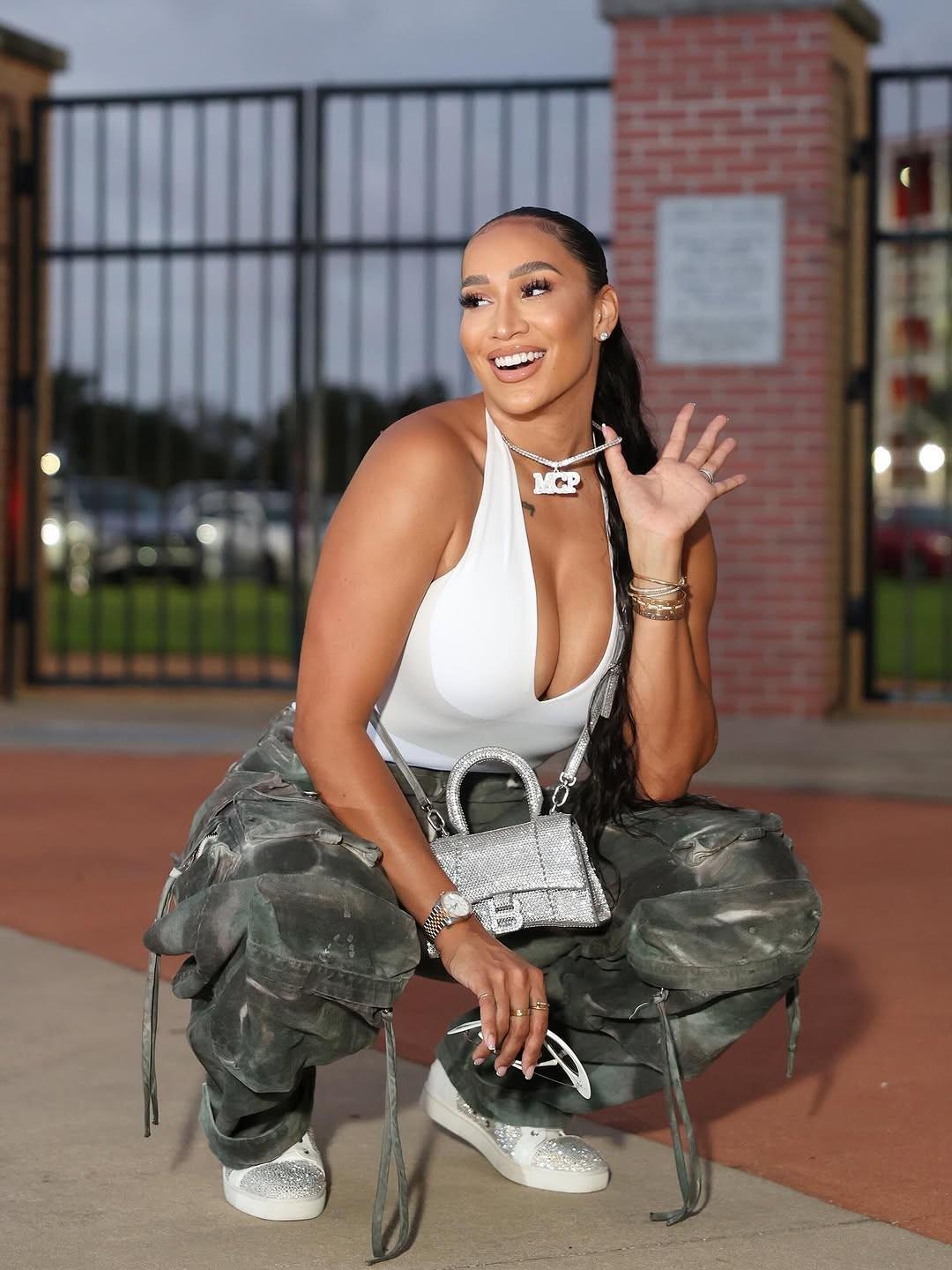 照片中,麦肯齐身着波普现效力球队孟菲斯灰熊的球衣,精心还原了丈夫的赛场造型。更引人注目的是,她佩戴了波普职业生涯斩获的两枚总冠军戒指,并与两座金光闪闪的总冠军奖杯同框合影,细节之处尽显用心。这一创意装扮既展现了夫妻间的甜蜜互动,也巧妙呼应了波普的辉煌职业生涯。