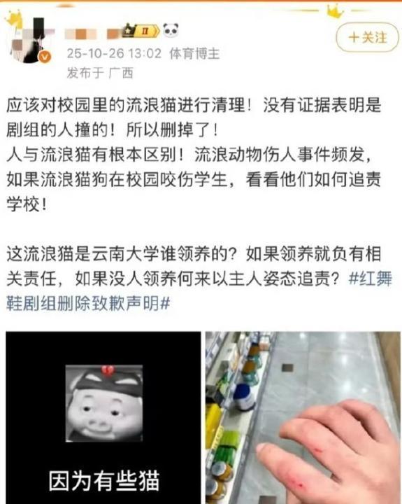 更令人愤怒的是,剧组不仅删帖,此前道歉中承诺的事情也未兑现,甚至试图将问题引向“流浪猫会伤人”的角度,试图撇清关系。然而,校方的回应直接打脸:剧方从未与校方沟通,承诺再次沦为空谈。