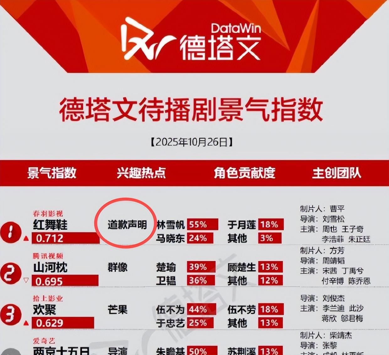 讽刺的是,尽管负面热度让《红舞鞋》登上多个榜单第一名,但网友的讨论量多纯粹是因为撞死猫和删道歉声明,热度背后全是虚的。观众更不会为这样的剧买单,反而会因剧组的操作更加抵制。