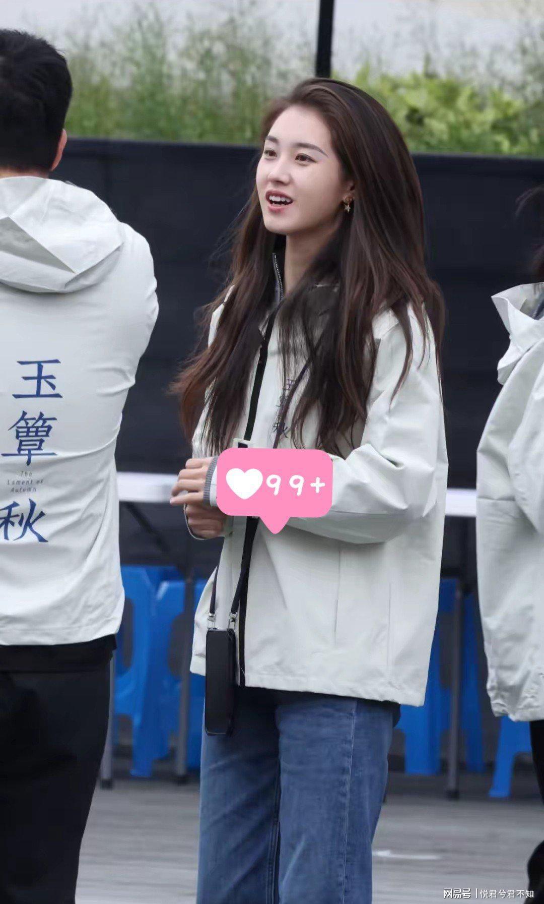 当天,郭宇欣仅穿了一件最简单的剧组T恤,未施粉黛,仅佩戴了一对小巧的耳饰,但她的状态却好得令人惊艳。