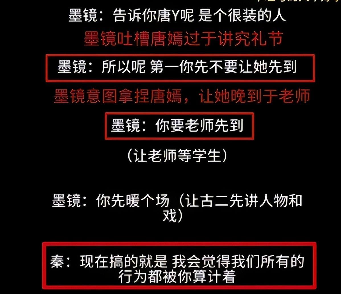 录音中,王家卫告诉古二,称唐嫣是一个很“装”的人,并提醒他在安排流程时,要让老师先到,再让唐嫣来。