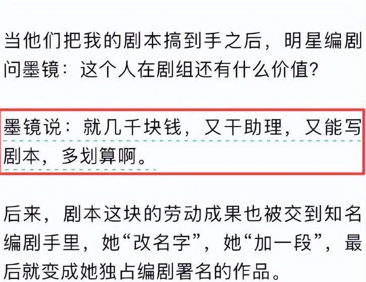 秦雯还不服气地问导演,古二在剧组还有什么价值,导演居然说,写剧本,当助理,多划算。