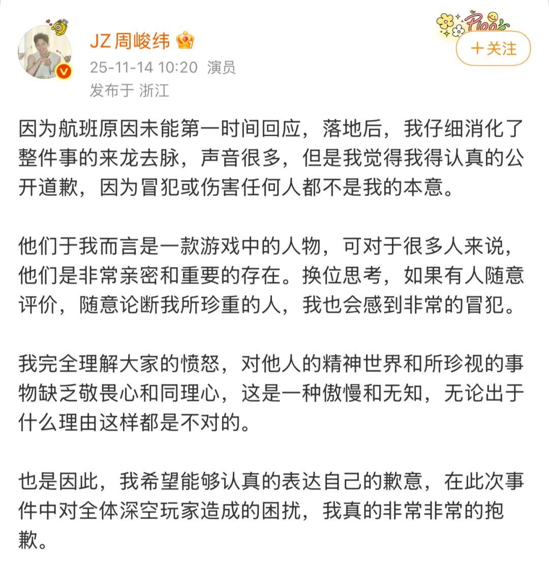 争议刚发酵没两天,他的道歉声明就光速抵达,内容写得那叫一个诚恳,反思自己“对他人珍视的事物缺乏敬畏心”、坦承“这是一种傲慢和无知”,还特别强调“乙游男主对很多人来说是非常亲密重要的存在”,看起来态度是到位了。