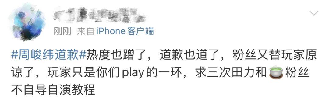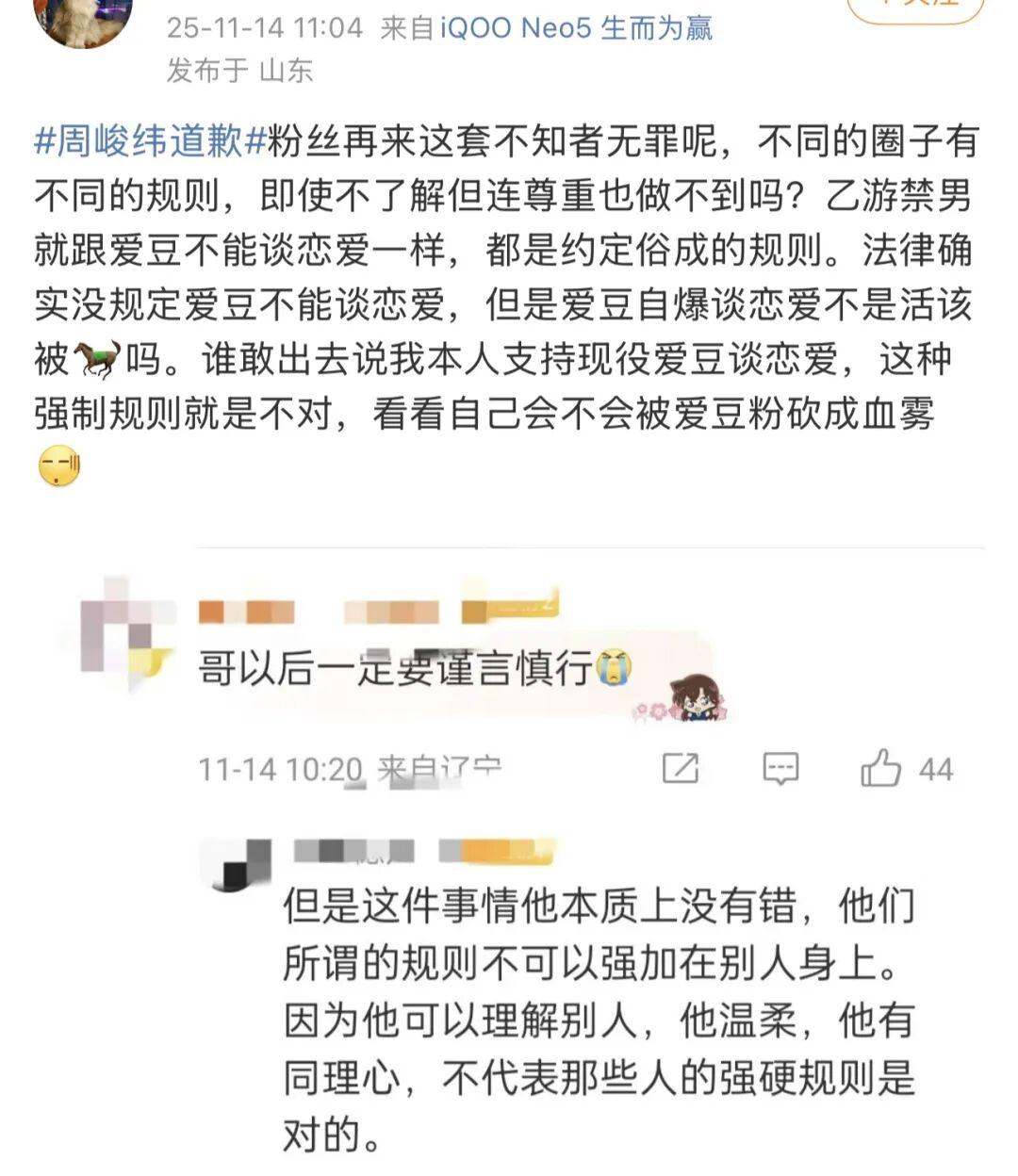 但周峻纬好歹在圈里混了这么多年,粉丝基础还是有的,面对这波攻势,喜欢他的人火速下场维护,要说“玩游戏是个人自由”,南风尚且能理解;可硬说他是“为了心理学研究”,甚至“为演技积累素材”…不是,你们自己听听这像话吗?