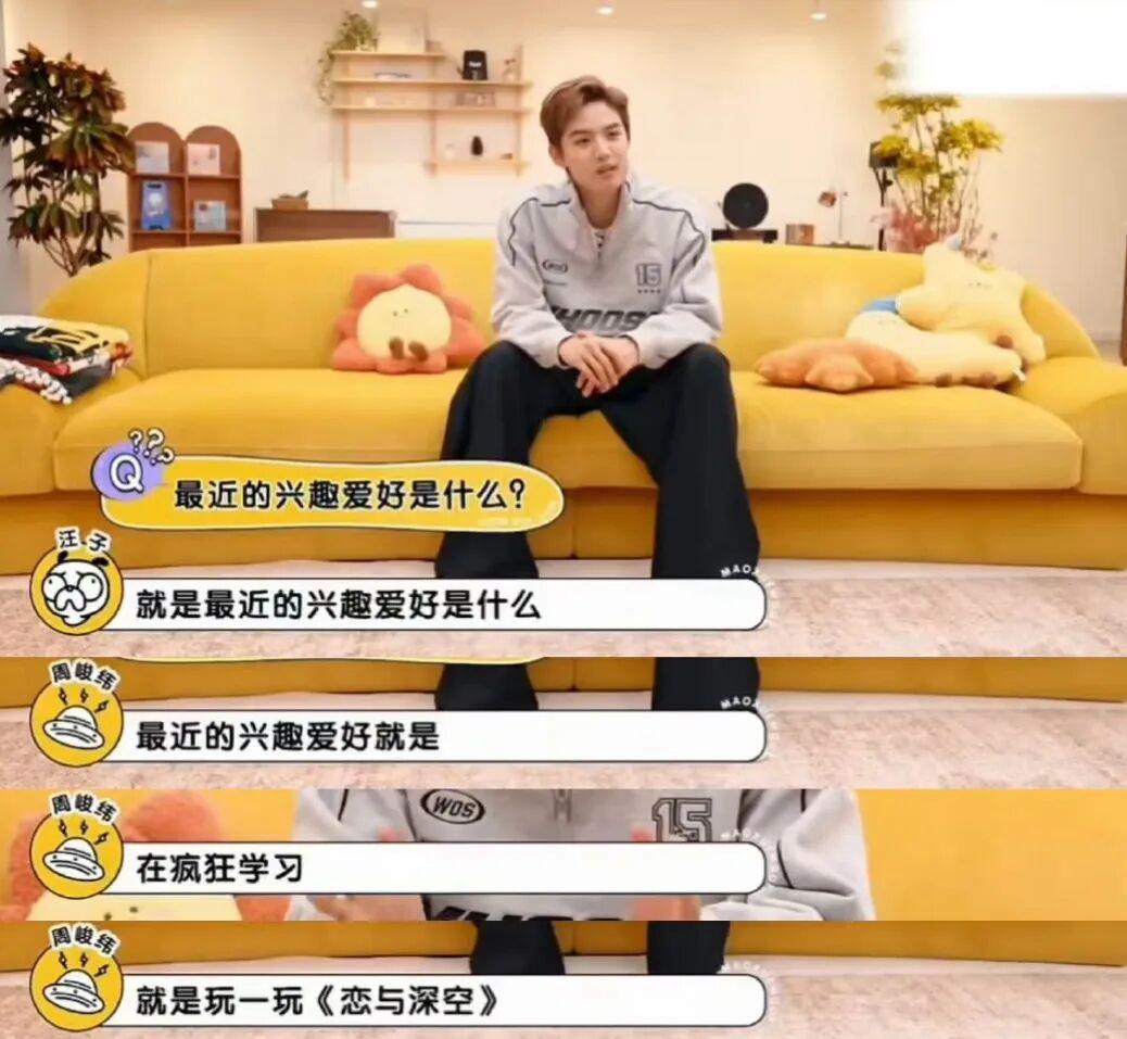让我们把镜头转移到最新一期的《毛雪汪》,他作为嘉宾登场,被问到最近有什么兴趣爱好时,直言不讳,开口就扔出一句石破天惊的答案:“就是玩一玩《恋与深空》。”