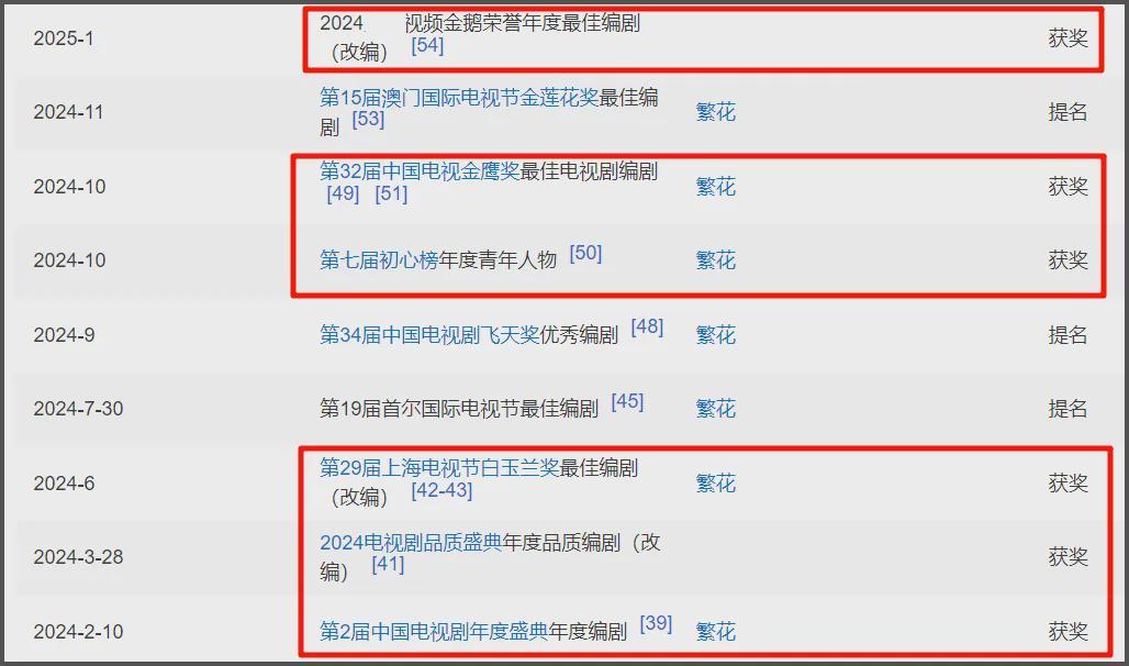 近几年,秦雯凭借改编《繁花》拿下了白玉兰奖和金鹰奖的最佳编剧,还提名飞天奖,差点完成电视剧三大奖大满贯。然而,这一切似乎都建立在古二前期写的《繁花》剧本之上。