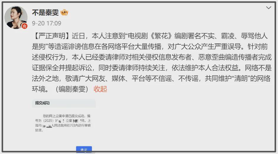 近日,《繁花》编剧秦雯的风波持续发酵,而她本人却迟迟未敢正面回应。代写、袭警等争议事件,若放在早年,当事人往往会召开记者会公开道歉求原谅。然而如今,这些人却躲在社交媒体账号背后,用“名誉权”起诉和投诉来试图掩盖真相,本人却不敢面对公众质疑,这种行为令人不齿。