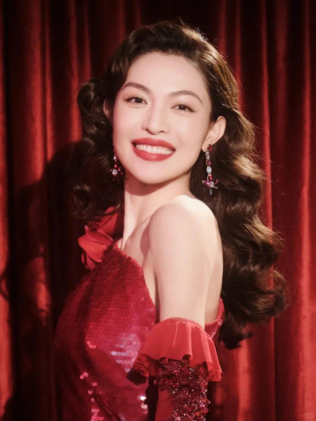 尤其是今年CCTV春晚中的造型,一袭红裙搭配波浪卷发,把复古港风诠释的淋漓尽致。