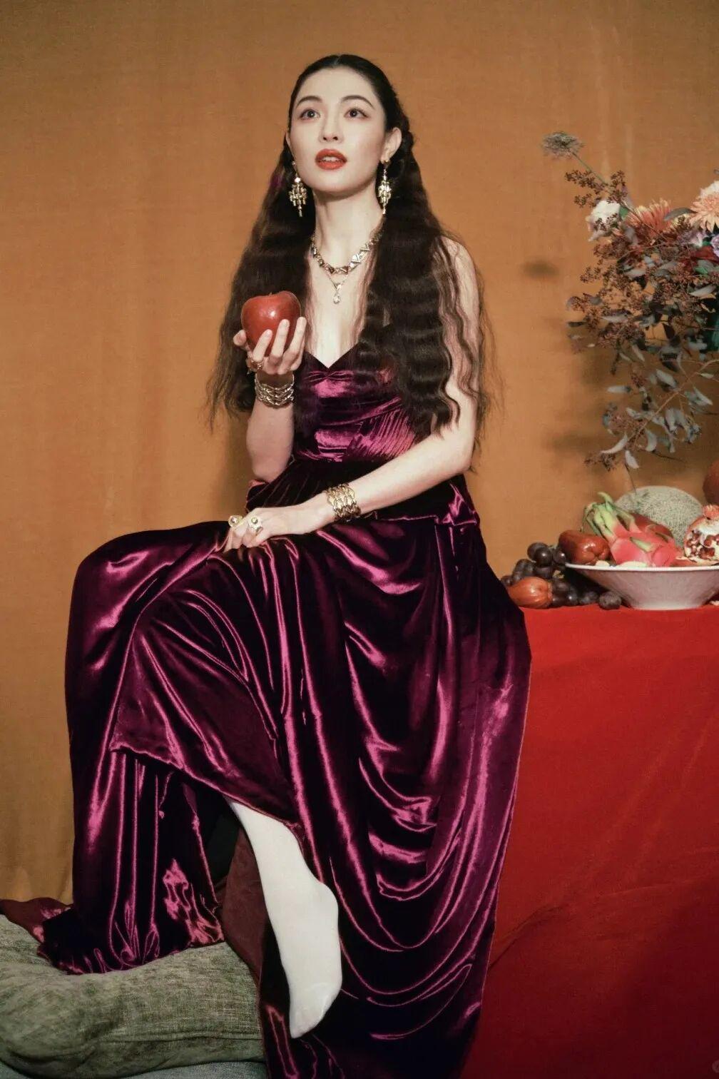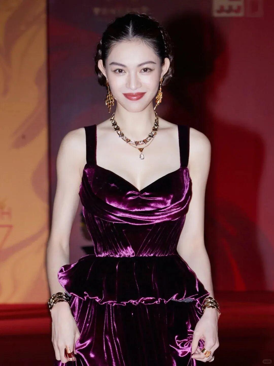 把时间轴拨回一年前的金鸡奖盛典,同样是上身酒红色礼裙,熟悉的油画感溢出屏幕,加上复古盘发的夹持,用风情万种形容也一点不为过。