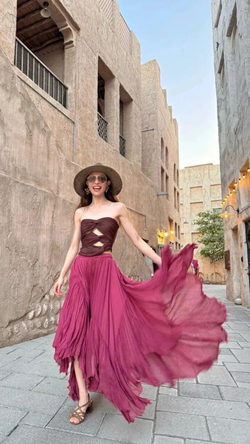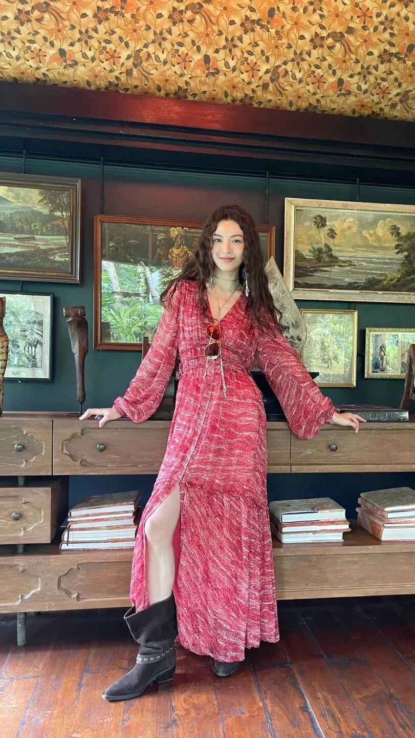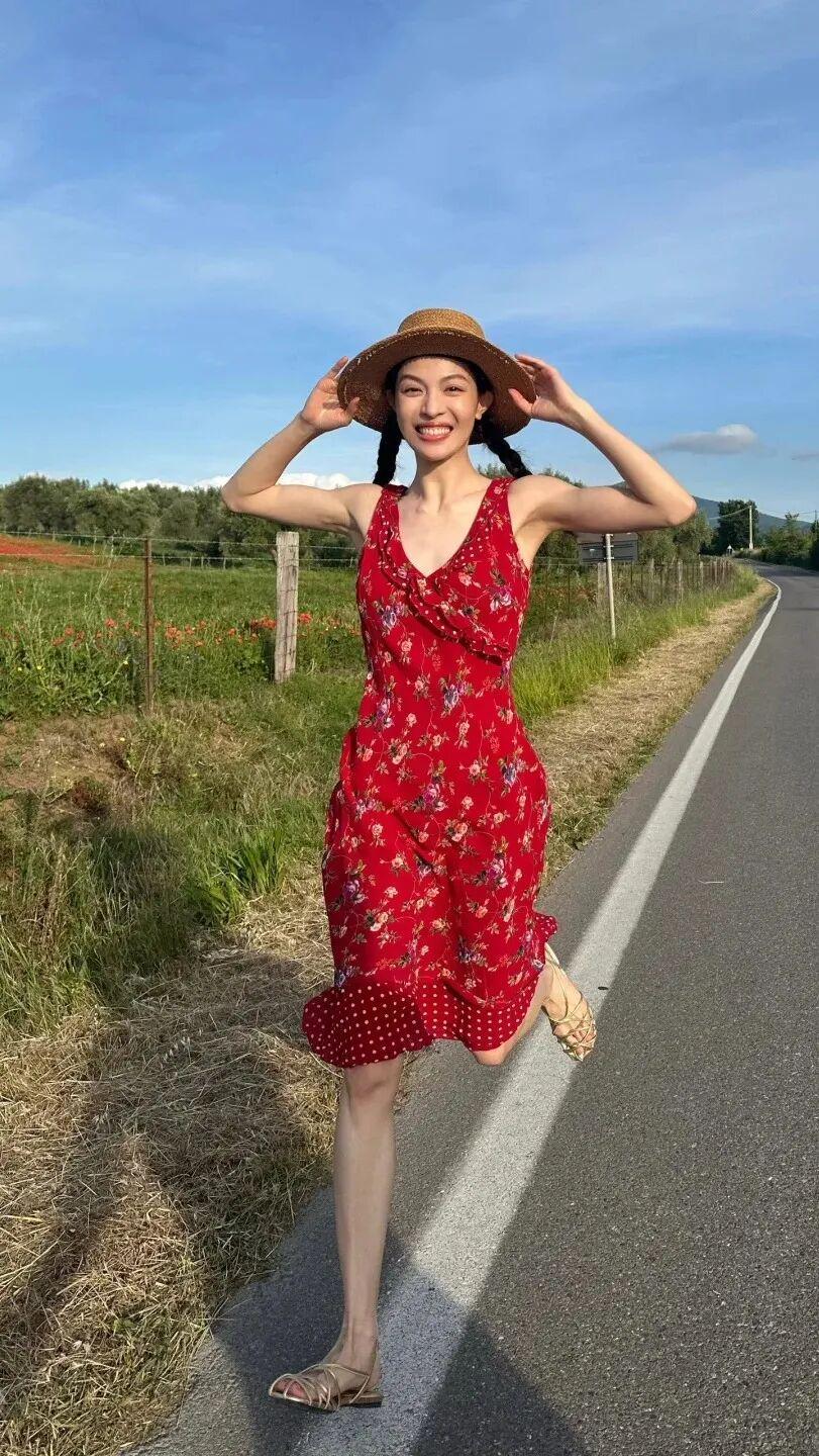 长裙一直是钟楚曦私服穿搭中的常客,不论是碎花裙还是彩色吊带,她都能完美消化,无论是度假风还是游客照,最显土气的搭配在她身上也充满了生命力。