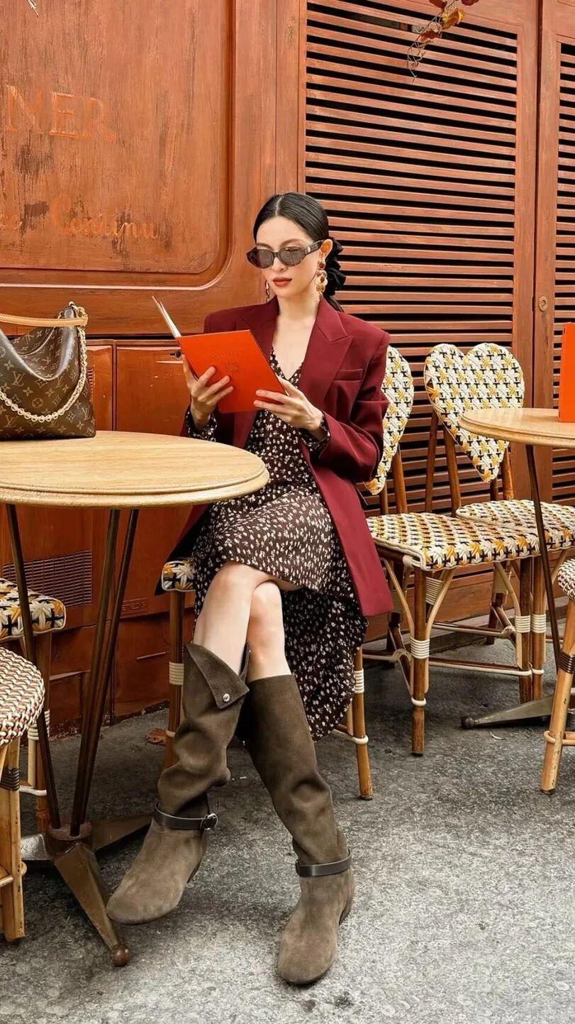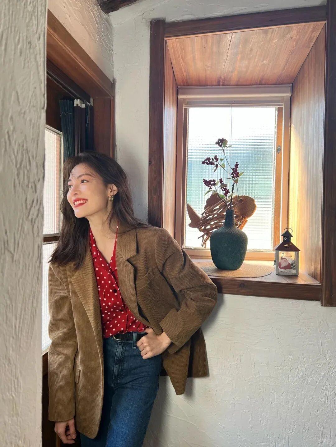 不仅如此,在她的私服照里,也能看到西装在女生身上的正确打开方式,职场风的西装外套或是阔版西装套装,她总能演绎的英气又优雅,酷飒“姐感”狠狠拿捏。