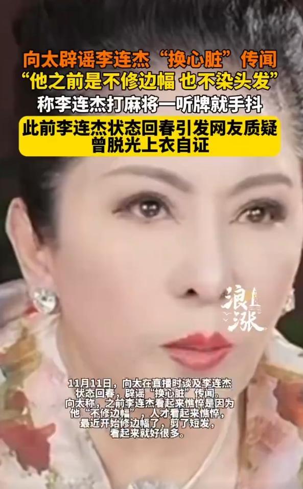 向太的幽默回应让网友恍然大悟:原来李连杰的“回春”并非医学奇迹,而是注重形象管理后的自然变化。至于所谓的“换心手术”,实则是今年8月他切除颈部良性肿块的常规手术,并无大碍。